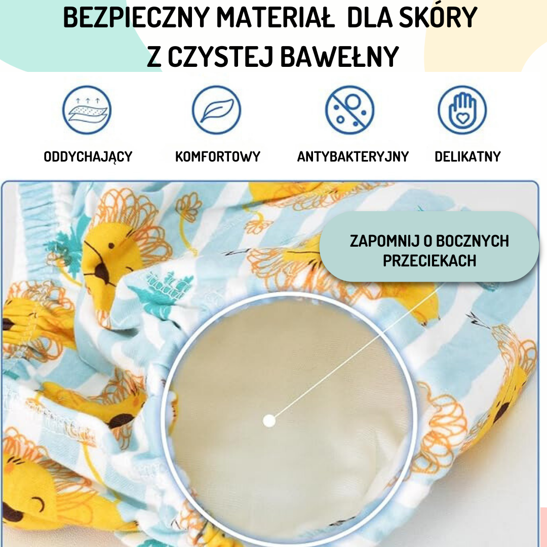 Sprawdź to na własne oczy! Nasze wodoodporne majtki zatrzymują wilgoć wewnątrz, dają maluszkowi komfort, bezpieczeństwo i koniec z mokrą pościelą
